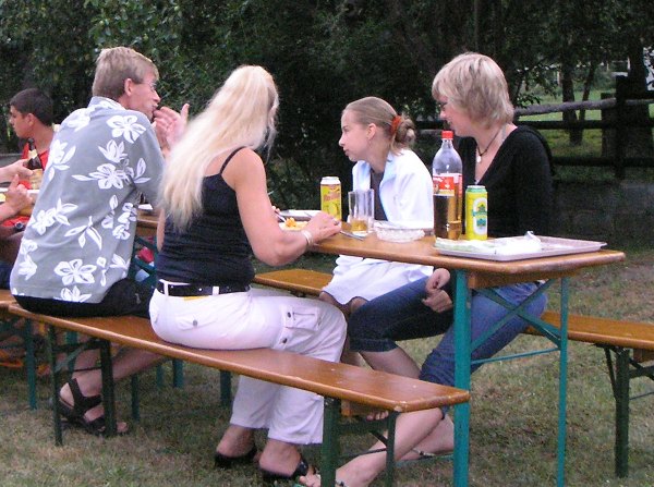 Schöne Sommerabende klingen in angenehmer Atmosphäre am offenen Kamin aus.