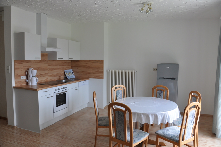 - Wohnküche mit Balkon, Backofen, Glaskeramik Kochmulde, Dunstabzug, Geschirrspüler, moderner, freistehender Kühlschrank mit Gefrierfach, Kaffeemaschine, Ausziehcouch (wird als Zusatzbett für eine 6. Person verwendet) und Sat-TV/Radio (Flachbildschirm)